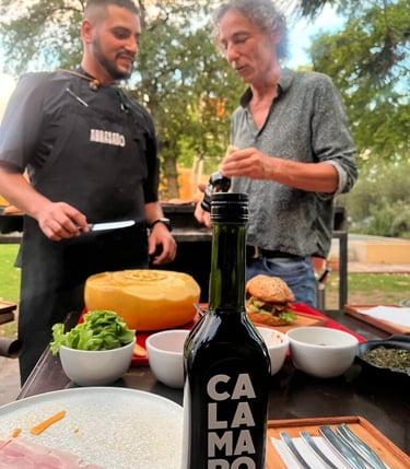 Este proyecto nace cuando Calamaro conoce a Gabriel Guardia, un enólogo olivícola mundialmente reconocido, y único Maestro Acetero del continente. En ese encuentro Javier confiesa ser un consumidor obsesivo de los mejores olivas. No sólo por los usos en la cocina, sino también por considerarlo un superalimento y antioxidante natural.